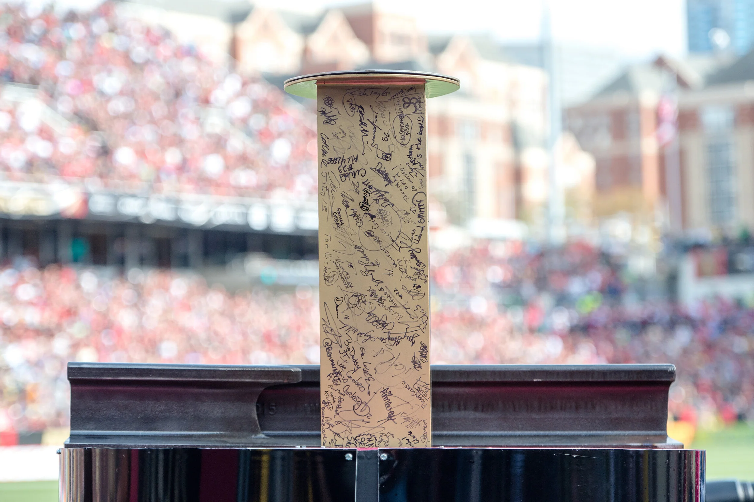 Ninety minutes before kickoff, as the home team arrives at the stadium, they are greeted by their faithful supporters. Lying ahead of them is The Golden Spike. stretching eight feet long, and accompanied with markers to inscribe their names. After the team signs, fans rush the symbol to leave their mark as well, uniting both players and fans.. Moments before kick-off, as the seats fill and the iconic symbol is marched into the stadium, the spike is hammered into place, uniting a fanbase under the rallying cry “A.T.L.”